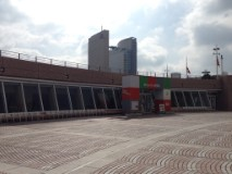 桜木町駅からランドマークタワーへ歩くと、右にきれいな形の船があります。